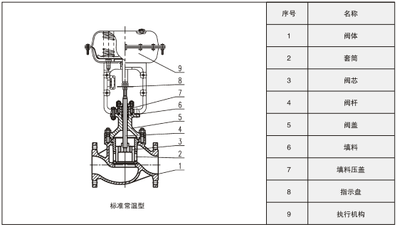 序號 | 項目 | 標準型調整閥 | 高溫、低溫型調節閥 | ||||