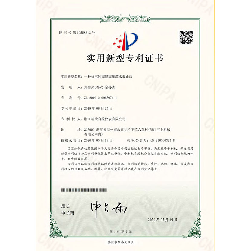 調(diào)節(jié)閥 SIL證書(shū) 2